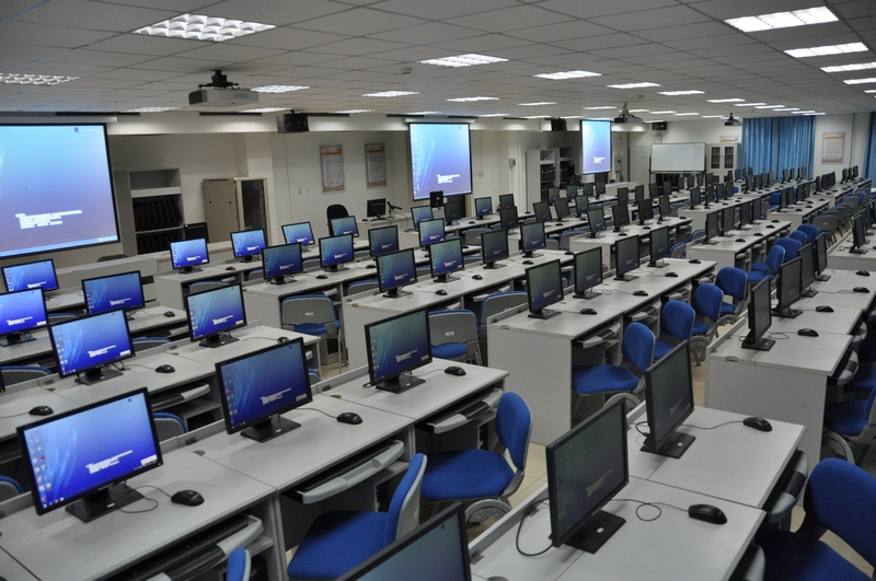 404实验室是ERP和电话调查与数据挖掘实验室,位于学院南路校区实验楼四层,东西长23.2m,南北宽10.2m,总面积约240㎡。实验室配备1台教师机,112台学生机,能同时容纳112名学生上机实验;配有三台高清投影,具有分屏显示和同屏显示功能;配有功放和无线麦克,方便教师授课和学生回答问题。同时已在讲桌预留投影、功放、网线接口,来连接教师自带笔记本。