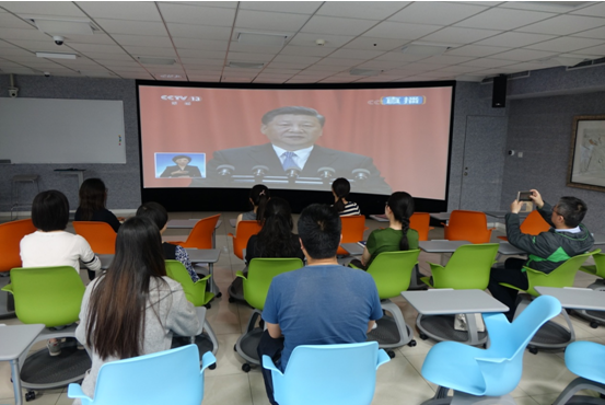 bet0365在沙河校区和学院南路校区各设一个集中收看的会场,组织全体教职工收看大会直播和学习讨论,部分因工作值班原因无法参加集中收看活动的人员通过电脑或手机在线观看了直播。