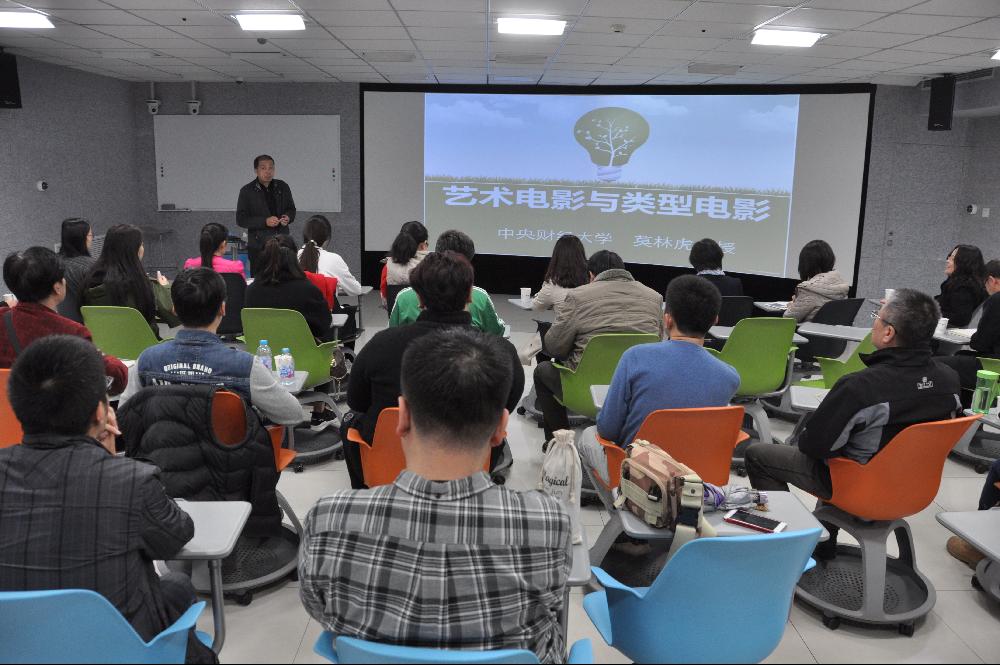 10月18日下午,中心举办的人文素质系列讲座活动第三讲在学院南路校区实验楼304室开讲,我校文化与传媒学院莫林虎教授为大家带来了题为“艺术电影与类型电影”的精彩讲座,讲座由中心主任王健主持,中心各科室的工作人员参加了学习活动。